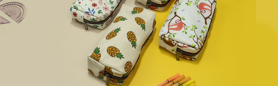 ►Pineapple Gift: LParkin canvas pencil cases in pineapple print come as a cute addition to your office supplies set. Our adorable pineapple pencil case is sweet, convenient and ready to tag along on all your adventures.